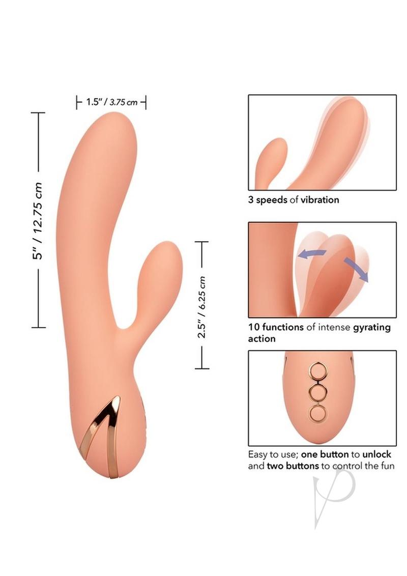 The California Dreaming® Monterey Magic has incredibly intense vibrating action in the stimulator, 10-functions of gyrating motion in the stimulator makes sure that you are never left wanting more. 3 speeds of independent shaft vibration allow you to experience the maximum in pleasure sensation with the operation of just two buttons (one controlling the stimulator, the other for the shaft). A third button controls the power, with an included three-second-press travel lock, preventing accidental discoveries of your favorite adult toy.
