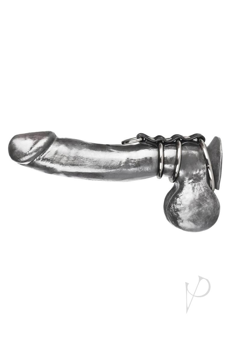 3 ring gates of hell is the perfect way to put any penis in purgatory. The unique design is made of a series of steel rings attached by a single strap. The largest ring treats the perineum and the balance 2 rings secure the penis. Features D-ring ideal for use with any leash.