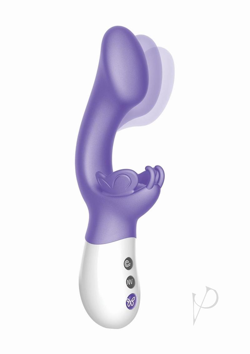 Introducing the new Butterfly Collection from The Rabbit Company! The Come Hither G-Kiss Butterfly is truly unique, combining a broad curved tip with the “come hither” motion that caresses and massages your g-spot. The wide-spreading butterfly wings provide broad coverage for all-over contact and vibration, and the textured surface enhances the feel of the extended massaging butterfly wings. Two independently controlled motors personalize your experience, the three high-powered speeds operate silently for discreet use, and the 10 powerful vibration patterns provide orgasmic external stimulation. The Come Hither G-Kiss Butterfly is also USB rechargeable and features an easy to use three button design.