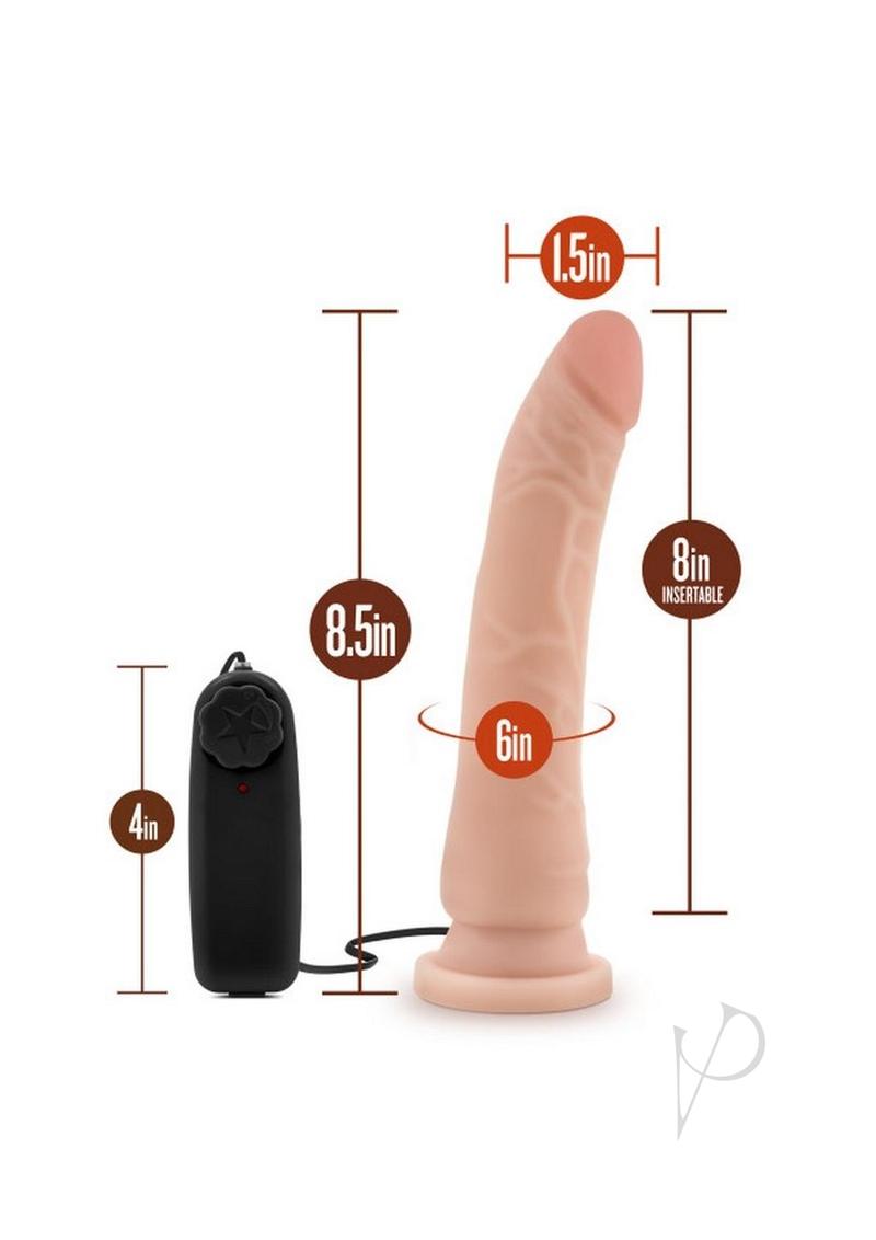 The doctor is in! The Dr. Skin 8.5 Inch Vibrating Realistic Cock is ready for you, with 8.5 inches of length and 1.5 inches of girth. It may be slim, but it's long and strong! This cock looks and feels so real: its firmness and bulging veins show how ready it is to play. The slightly curved shaft is perfect for G-spot or P-spot stimulation. The suction cup base is perfect for solo use and is harness compatible for pegging and other couples play.