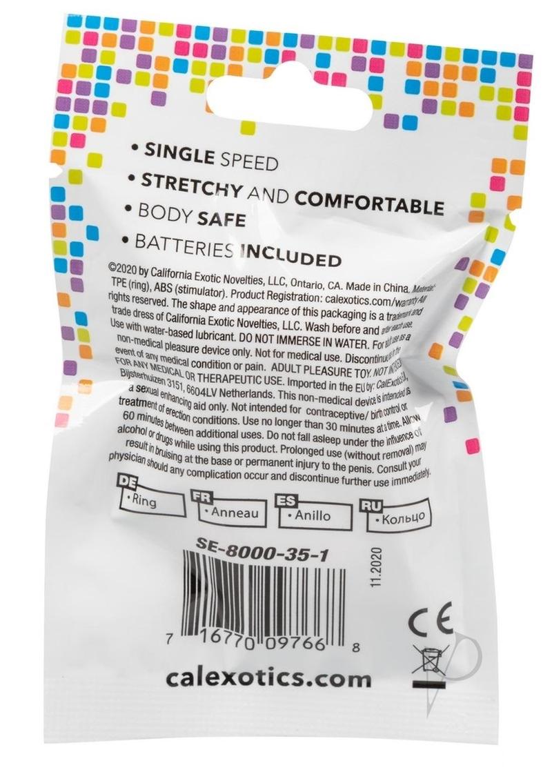 This vibrating cock ring is the buzz all around town. For the person who simply isn't satisfied with the norm, the Foil Pack Vibrating Ring gives you the dynamic coverage you need, and the function you deserve. Keep up the strength, girth, and pleasure of your member by using this super-stretchy ring to snugly hug your most valuable possession, keeping you harder, longer. The vibration features in this compact adult toy allows you and your partner to reach the absolute heights of ecstasy that you have been seeking, maximizing sexual pleasure while also maximizing full penetration. The body-safe, super soft and stretchy material is hygienic, and the included batteries let you know that you are ready too whenever and wherever!